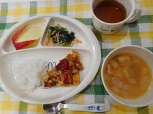 ☆11月6日(月)☆ ・ご飯 ・みそ汁 ・きのこたっぷりオムレツ ・小松菜ともやしのナムル ・りんご