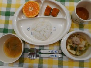 ☆1月10日(水)☆ ・ご飯 ・大根とワカメの味噌汁 ・豆腐なべ ・かぼちゃの煮物 ・みかん