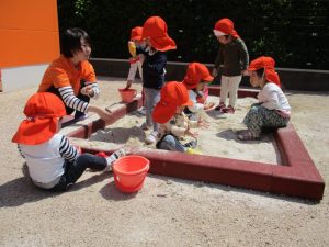 園庭で砂場遊び~(*^^*)