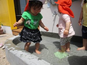 本格的な水遊びはまだですが、暑い日には水に触れて気持ちよく