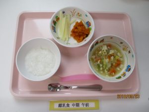 2018.05.23|給食ピックアップ 5月23日(水)お給食 ★幼児食★ ・ごはん ・八宝野菜 ・豆腐の味噌汁 ・南瓜煮付 ・りんご ★離乳食★ ・おかゆ ・豆腐と野菜の煮物 ・南瓜のだし煮 ・りんご 前へ 次へ