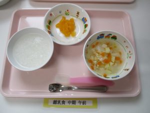 2018.05.30|給食ピックアップ 5月30日(水)お給食 ★幼児食★ ・チキンピラフ ・豆腐と葱の味噌汁 ・ワカメの酢の物 ・オレンジ ★離乳食★ ・おかゆ ・鶏ささみと野菜のだし煮 ・オレンジ 前へ 次へ