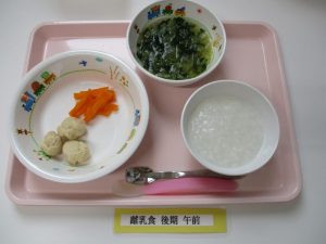 2018.06.27|給食ピックアップ 6月27日(水)お給食 ★幼児食★ ・ごはん ・手羽先風から揚げ ・すまし汁 ・胡麻和え ・パイン ★離乳食★ ・おかゆ ・野菜のだし煮 ・鶏団子 ・にんじんスティック 前へ 次へ