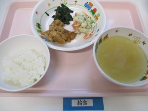 ★幼児食★ ・ご飯 ・すまし汁 ・ゆで豚の甘味噌からめ ・スパゲティーソテー ・おひたし ★離乳食★...