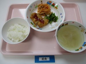 2018.07.02|給食ピックアップ 7月2日(月)お給食 ★幼児食★ ・ごはん ・玉ねぎの味噌汁 ・ヒレカツ ・スパゲッティー野菜ソテー ・胡瓜のおかか和え ・おかゆ ・味噌汁 ・キュウリのおかか和え ・そぼろ煮 前へ 次へ