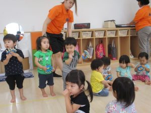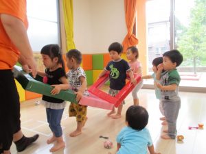 雨が続き、なかなか水遊びが出来ませんでしたが、室内で様々な活動を行い、