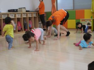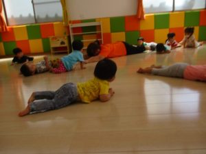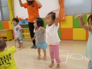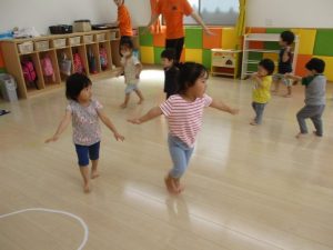 音楽に合わせて手をたたいたり、ジャンプしたり、走ったり・・・