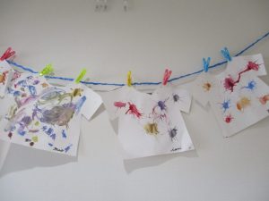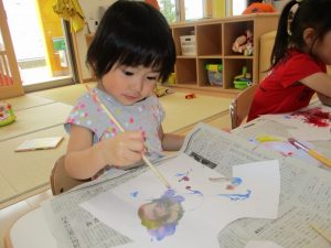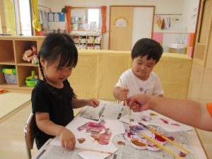 りんご組さんは、筆や棒を使っての製作も楽しました!(^^)!