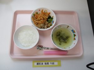 2018.07.19|給食ピックアップ 7月19日(木)お給食 ★幼児食★ ・ごはん ・大根の味噌汁 ・鶏肉のさっぱり焼き ・スパゲッティ野菜 ・チンゲン菜のおかか和え ★離乳食★ ・おかゆ ・味噌汁 ・鶏のさっぱり焼 ・ゆで野菜 ・スパゲッティソテー 前へ 次へ