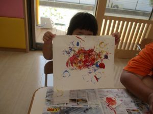 絵の具のしずくが紙に広がる、とってもオシャレな作品になりました!!