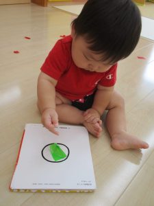 つまんだり、剥がしたり・・・指先を十分に動かして楽しむシール遊びは、