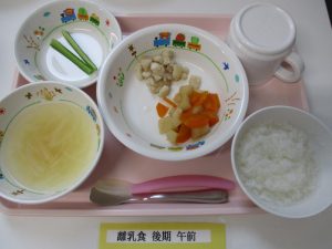 2018.08.22|給食ピックアップ 8月22日(水)お給食 ★幼児食★ ・ごはん ・みそ汁 ・鯖の竜田揚げ ・ポテトのマヨネーズ和え ・スティックきゅうり ★離乳食★ ・おかゆ ・みそ汁 ・煮魚 ・ゆで野菜 前へ 次へ