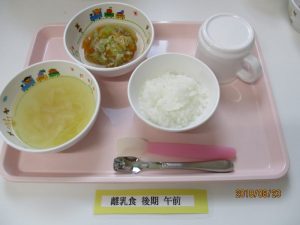 2018.08.23|給食ピックアップ 8月23日(木)お給食 ★幼児食★ ・ごはん ・みそ汁 ・しょうが焼き ・おくらとキャベツのごま酢あえ ★離乳食★ ・おかゆ ・みそ汁 ・ツナと野菜の煮物 前へ 次へ