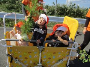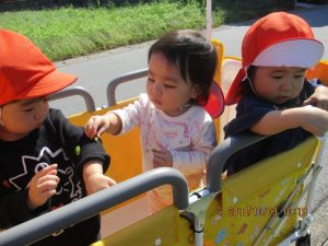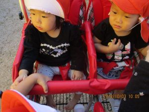 お友だちと手を繋いだり、散歩車に乗って準備バッチリです♪♪