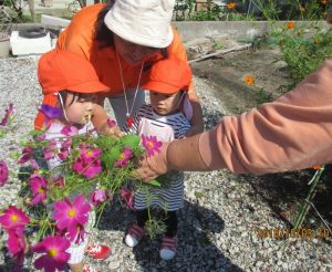 子どもたちは興味深そうに花に触れたり匂ったりしていました(^_-)-☆