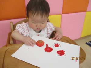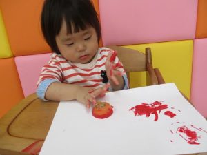 もも組さんは、野菜スタンプをしました(*^^)v