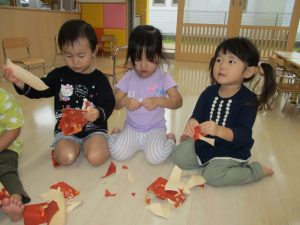 時々保育士に手伝ってもらいながらもやる気満々の子どもたち☺
