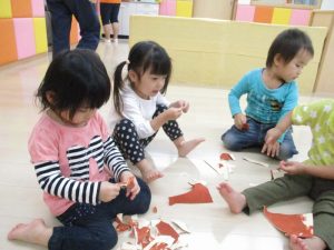 しっかり絵の具が乾いたら子どもたちがビリビリ~っと破ったり