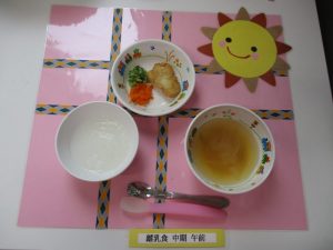 2018.10.17|給食ピックアップ 10月17日(水)お給食 ★幼児食★ ・ご飯 ・味噌汁 ・カジキマグロのピザ風 ・茹でブロッコリー ・おかか和えにんじん ★離乳食★中期食 ・おかゆ ・味噌汁 ・煮魚 ・茹でブロッコリー ・ゆでにんじん 前へ 次へ
