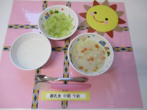 2018.10.19|給食ピックアップ 10月19日(金)お給食 ★幼児食★ ・ご飯 ・カレーシチュー ・チーズ ・キャベツの胡麻ネーズ和え ★離乳食★中期食 ・おかゆ ・シチュー ・刻みおひたし 前へ 次へ