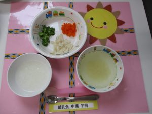 2018.10.31|給食ピックアップ 10月31日(水)お給食 ★幼児食★ ・ご飯 ・味噌汁 ・カジキマグロのピザ風 ・茹でブロッコリー ・おかか和えにんじん ★離乳食★中期食 ・おかゆ ・味噌汁 ・煮魚 ・茹でブロッコリー ・ゆでにんじん 前へ 次へ