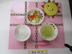 2018.11.01|給食ピックアップ 11月1日(木)お給食 ★幼児食★ ・ご飯 ・味噌汁 ・魚のから揚げ ・おかか和え ★離乳食★中期食 ・おかゆ ・煮魚 ・おかか和え ・茹でさつま芋 ・味噌汁 前へ 次へ