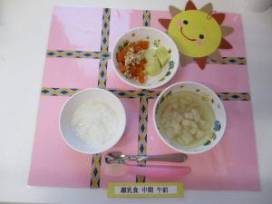 2018.11.05|給食ピックアップ 11月5日(月)お給食 ★幼児食★ ・ご飯 ・味噌汁 ・豚肉のケチャップからめ ・切りこんぶの煮物 ・粉ふき芋 ★離乳食★中期食 ・おかゆ ・そぼろ煮 ・茹でじゃが芋 前へ 次へ