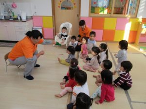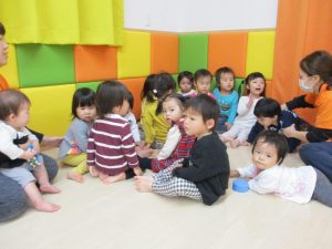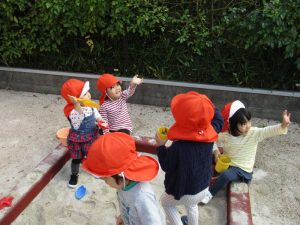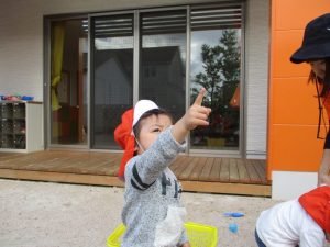 「あっ!ひこうき!!」と、いちご組さんのお友だちの声に
