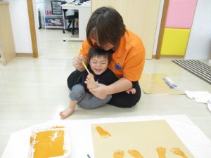 足の裏に絵の具を塗って、足形をとりましたよ!!!