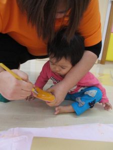 保育士が塗る様子をじ~っと見たり・・・