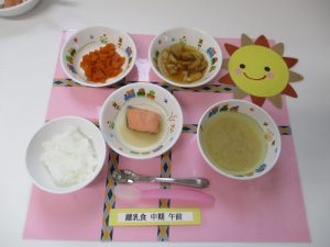 2018.11.30|給食ピックアップ 11月30日(金)お給食 ★幼児食★ ・ご飯 ・味噌汁 ・魚の塩焼き ・切り干し大根の煮物 ・里芋の甘みそからめ ★離乳食★中期食 ・おかゆ ・味噌汁 ・鮭だし煮 ・茹で人参 ・里芋の煮物 前へ 次へ