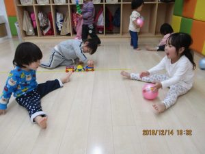 「いくよ~!!」と、ボールを転がして~?