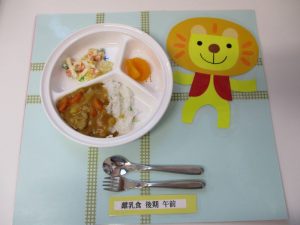 ★幼児食★ ・ご飯 ・カレーシチュー ・マカロニサラダ ・みかん缶 ★離乳食☆後期食★ ・おかゆ ・...