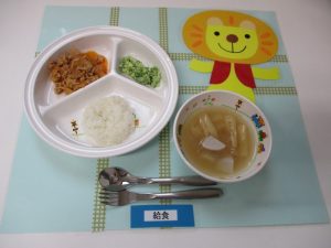 ★幼児食★ ・ご飯 ・にぎやか味噌汁 ・焼肉 ・スパゲティソテー