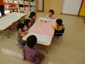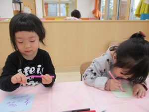 みんな仲良しでペンを譲り合いながら、楽しく制作が出来たいちご組のおともだちでした?
