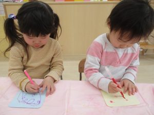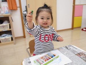 クレヨンをしっかり握って、上手にお絵描きが出来るようになりました(*^-^*)ⅴ![]()