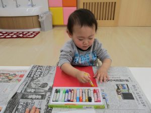 画用紙にいろんな色が重なっていくのが楽しくて、たくさんのクレヨンを使ってお絵かきが出来ました( *´艸`)![]()