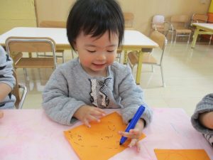 『お絵描き始めるよ~』と保育士が言うと、元気いっぱい走ってきて、やる気満々でした
