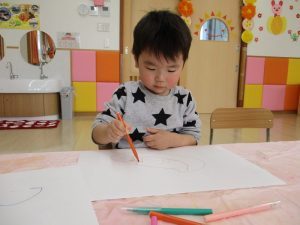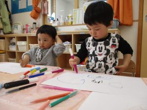 初めての制作は、自由にお絵描きでした![]()