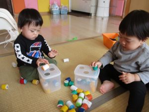 ?いちご組?のお友だちは、ポットン落としが大好きです![]()
