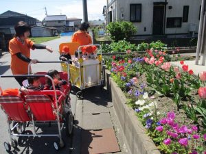 手に触れる事が出来る高さに桜が咲いていたので、子どもたちは興味しんしんです(*´▽`*)![]()