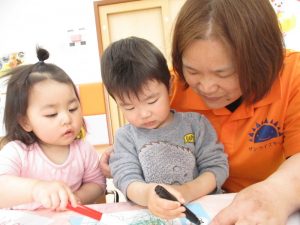 『たくさん描けたね~』と、お友だちを褒めてくれています( *´艸`)