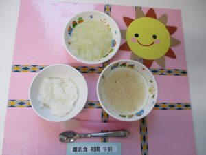 2019.05.24|給食ピックアップ 5月24日(金)お給食 ★幼児食★ ・ご飯 ・ハヤシ風シチュー ・インゲンのサラダ ・チーズ ・みかん缶 ★離乳食☆初期☆★ ・おかゆ ・茹で大根 ・じゃがいものカツオ出汁 前へ 次へ