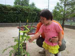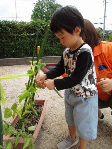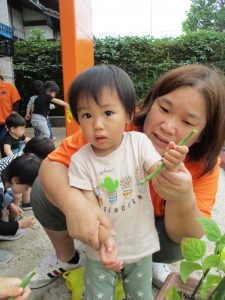 お世話をしてくれた?りんご組?さんが、代表して採る事にしました![]()