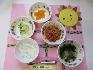 2019.06.26|給食ピックアップ 6月26日(水)お給食 ★幼児食★ ・ご飯 ・味噌汁 ・チキンと野菜のケチャップ煮込み ・粉ふき芋 ・みかん缶 ★離乳食☆後期★ ・軟飯 ・味噌汁 ・煮込みツナ ・粉ふき芋 ・みかん缶 前へ 次へ