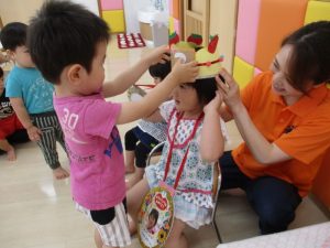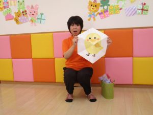 オタマジャクシがカエルになったり、太陽が雲や傘に変わるのを、子どもたちは興味深々で見ていましたよ![]()