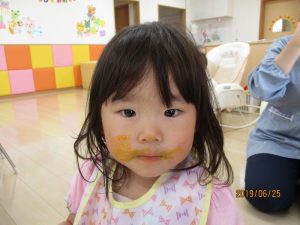 かぼちゃクリームでお化粧をしたみたいで、可愛いお顔になっちゃいました![]()