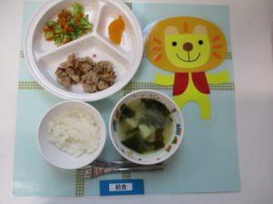 ★幼児食★ ・ご飯 ・味噌汁 ・豚肉の甘酢炒め ・おかか和え ・みかん缶 ★離乳食☆中...