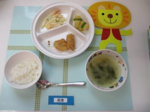 ★幼児食★ ・ご飯 ・味噌汁 ・魚のから揚げ ・マカロニサラダ ・含め煮 ★離乳食☆中...