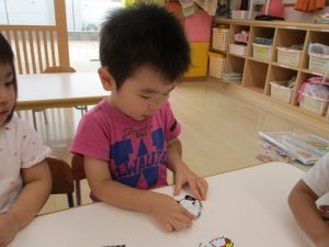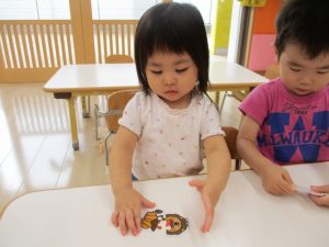 いろんなカードを合わせてみては、上手に完成させていくりんご組の子ども達![]()